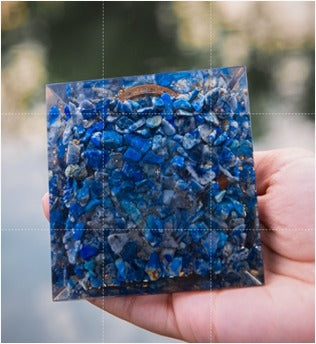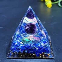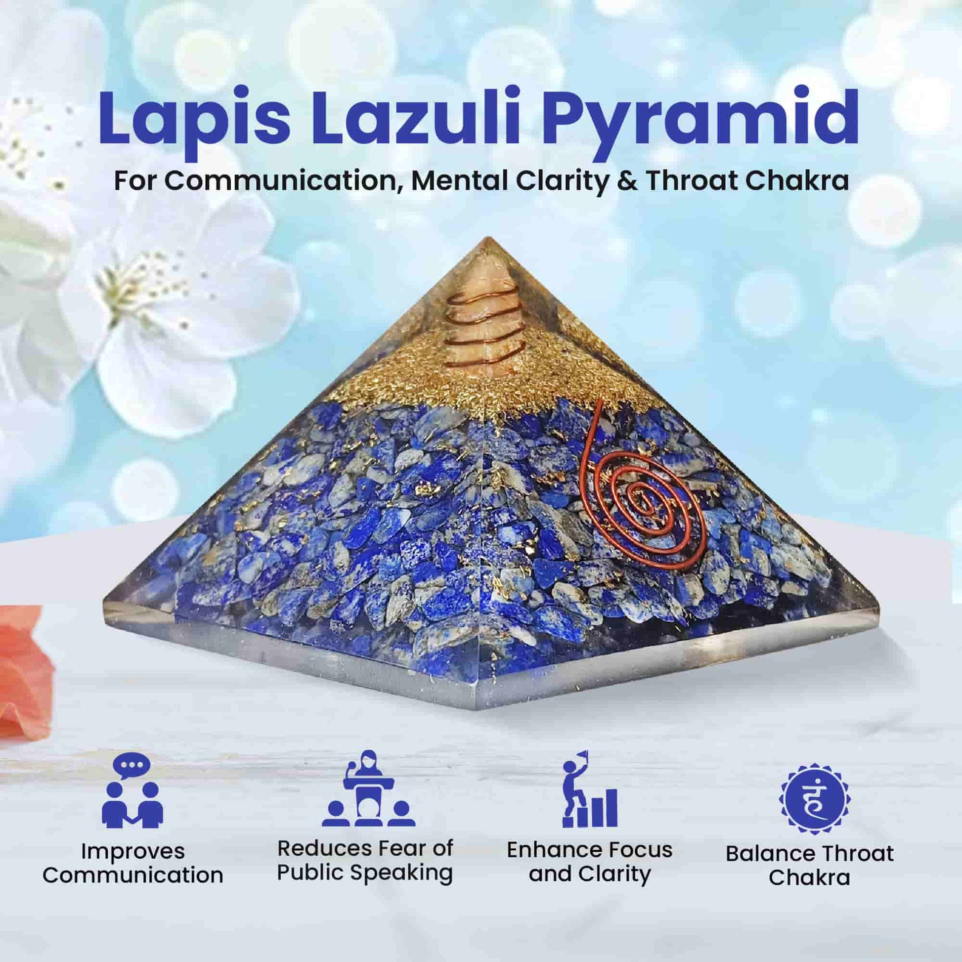 This powerful Lapis Lazuli Orgone Pyramid is handmade in India using original materials like natural crystals, copper coil, clear cast resin, and positive energy. Lapis Lazuli is known to enhance intellectual ability, stimulate memory, and support wisdom, truth, and learning—making it ideal for professionals like executives, journalists, and psychologists.