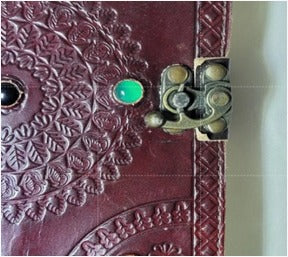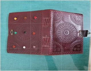 Navaratna Leather Diary with 9 Gemstones & Mandala Design – Handmade Journal